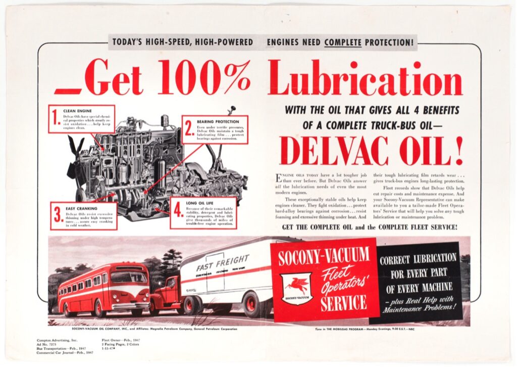 Właśnie z myślą o tych wyzwaniach naukowcy z firmy Vacuum Oil, poprzedniczki ExxonMobil, opracowali w 1925 roku specjalną formulację oleju. Miała ona sprostać ekstremalnym, jak na tamte czasy, obciążeniom. Tak narodził się Delvac – pierwszy olej stworzony z myślą o silnikach wysokoprężnych, dając początek długiej historii innowacji w dziedzinie smarowania pojazdów ciężarowych.